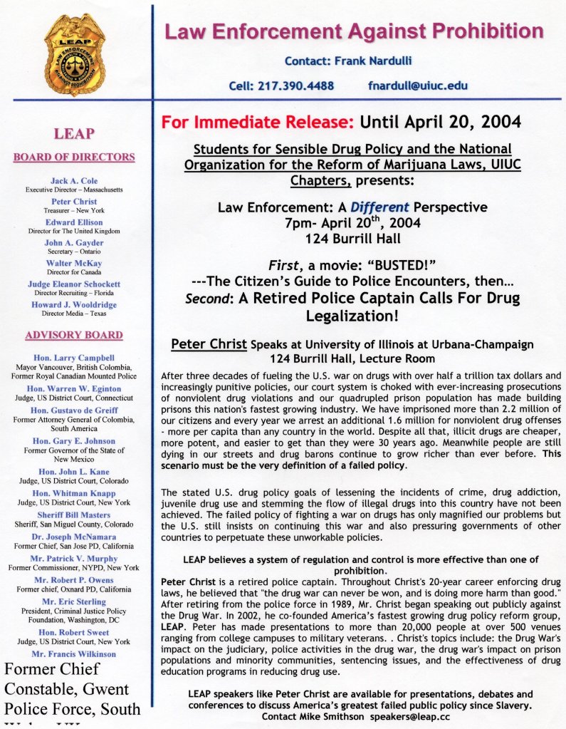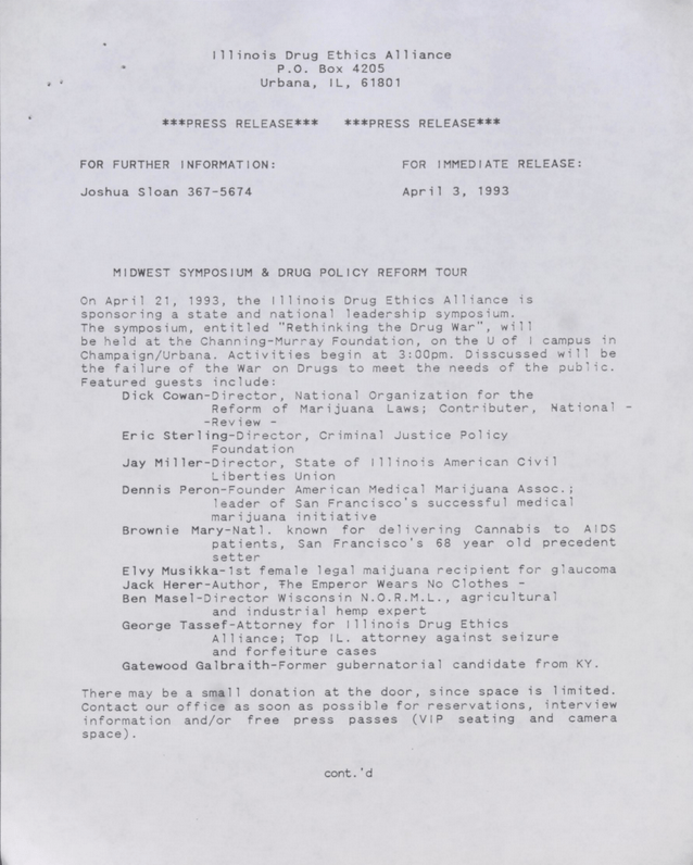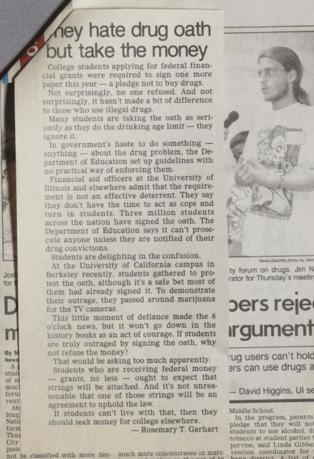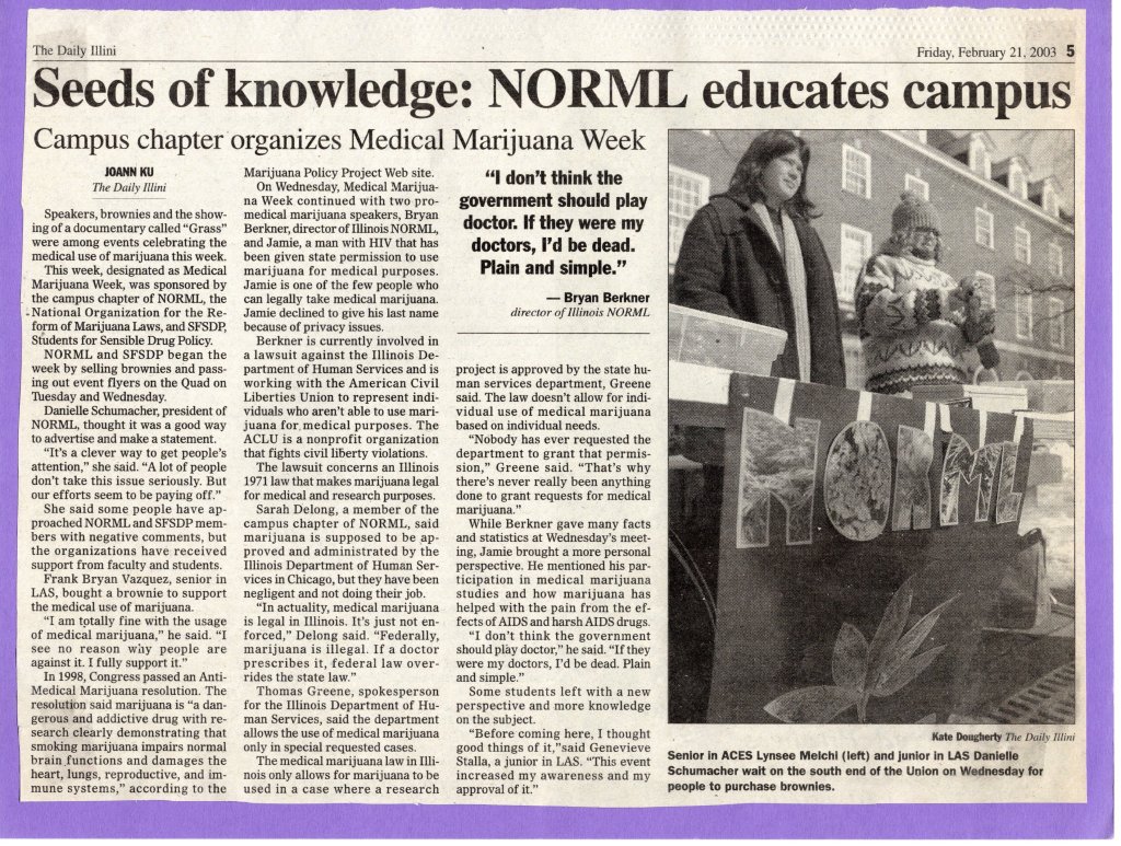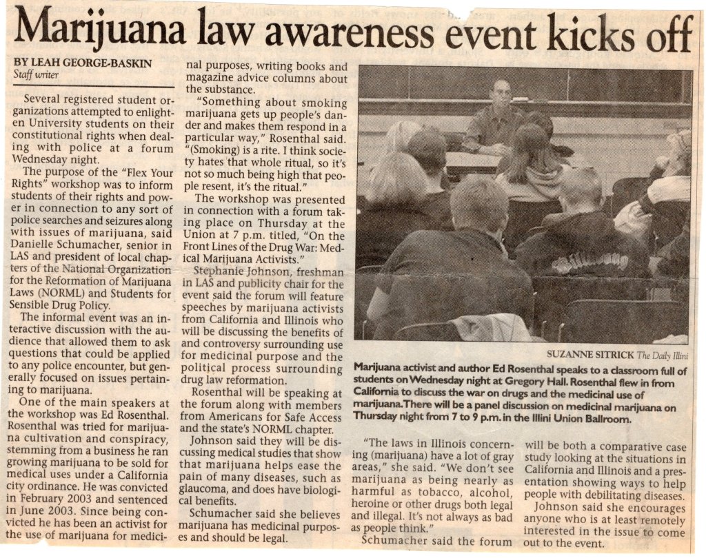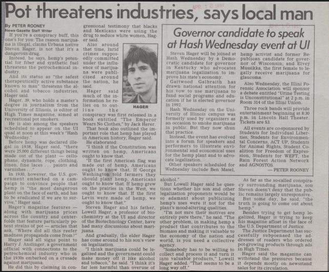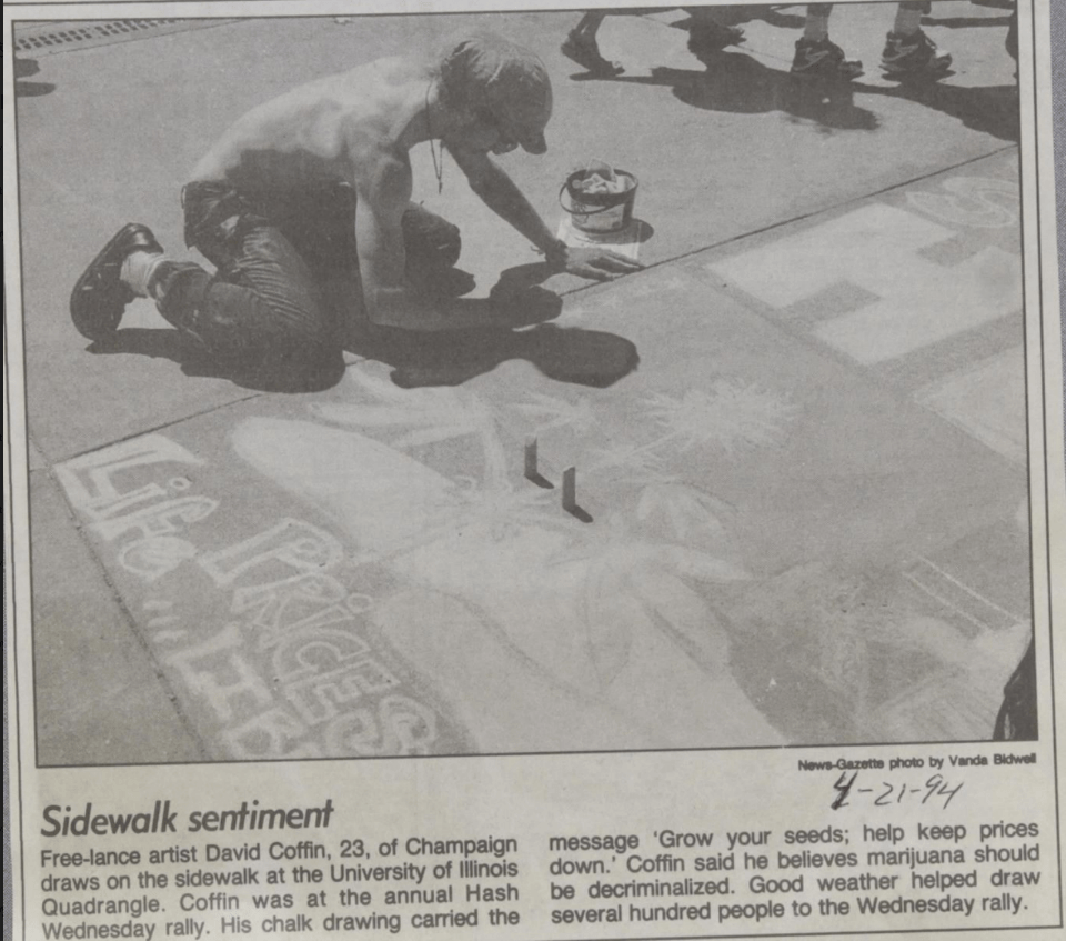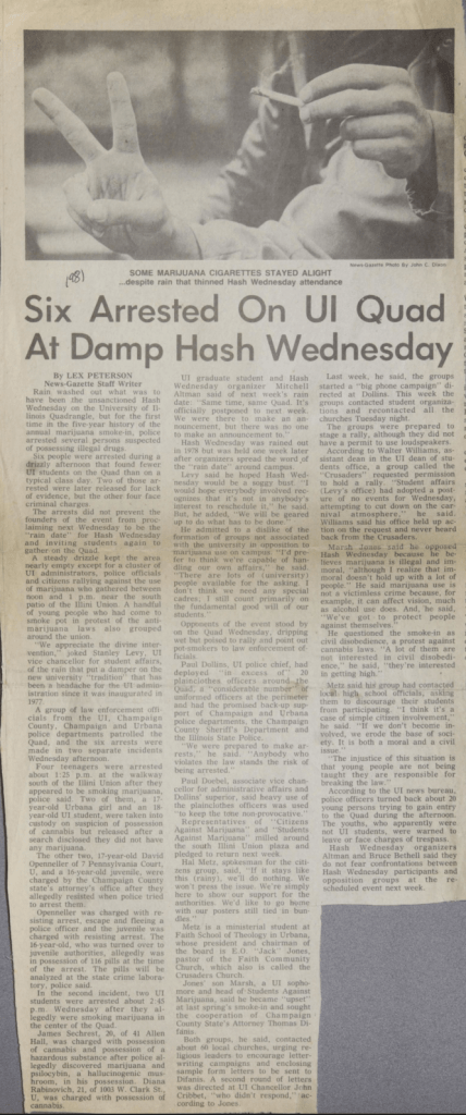Below, you will find photographs, newspaper headlines, press releases, notes, signage, and more, all directly shared with me by participants of past Hash Wednesdays at the University of Illinois.