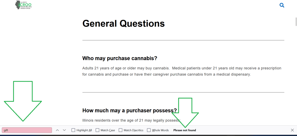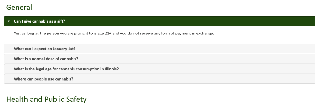 Before I share what I’ve found, I want to share some background regarding the context the legal status of gifting cannabis in Illinois.