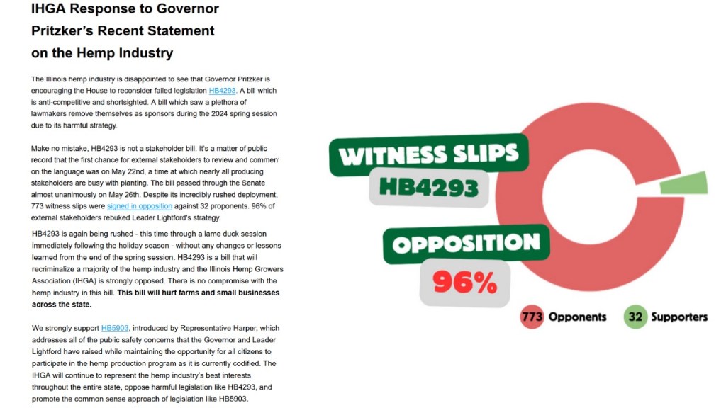 HB4293, rather than addressing genuine public health concerns, appears to be a reactionary measure aimed at bringing hemp under the same restrictive system that governs marijuana in Illinois.