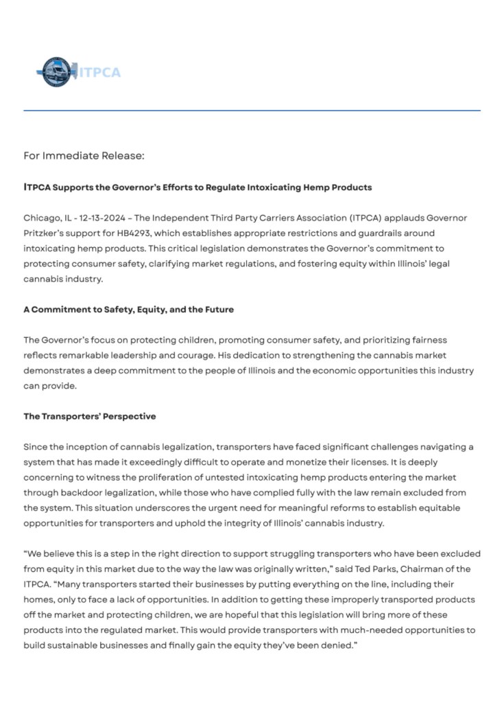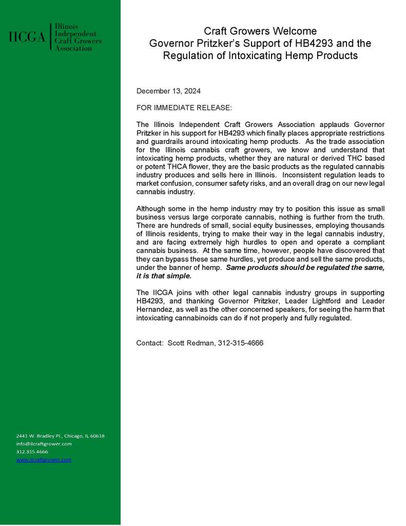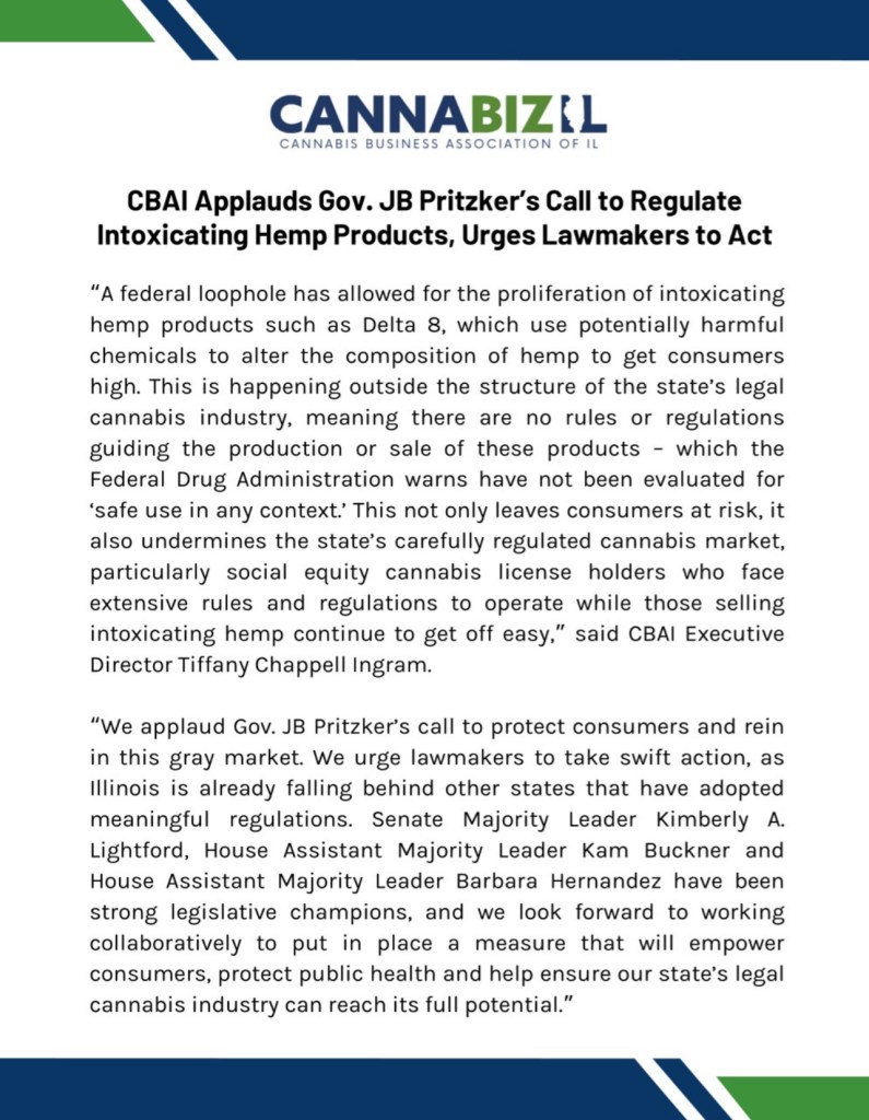 The Illinois cannabis industry was built on safety, fairness, and equity. Intoxicating hemp products are not consistent with those values, and action is needed immediately. So today, I’m calling on the Illinois House of Representatives to pass HB4293. This legislation will regulate intoxicating hemp products in a similar manner to how legal cannabis is regulated. This bill was negotiated over the course of a year, the Senate has already passed it, and it’s time to make it the law of the land.
