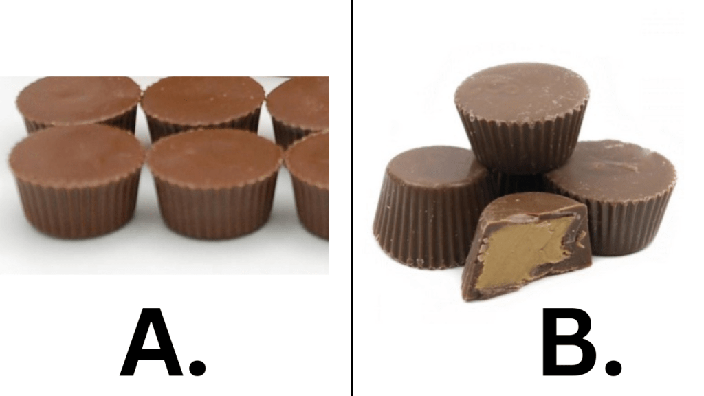 The original photo I used in the quiz was a cropped picture of the Caramel Met Cookie Cups by SweetBuzz. This product is sold in Illinois dispensaries.